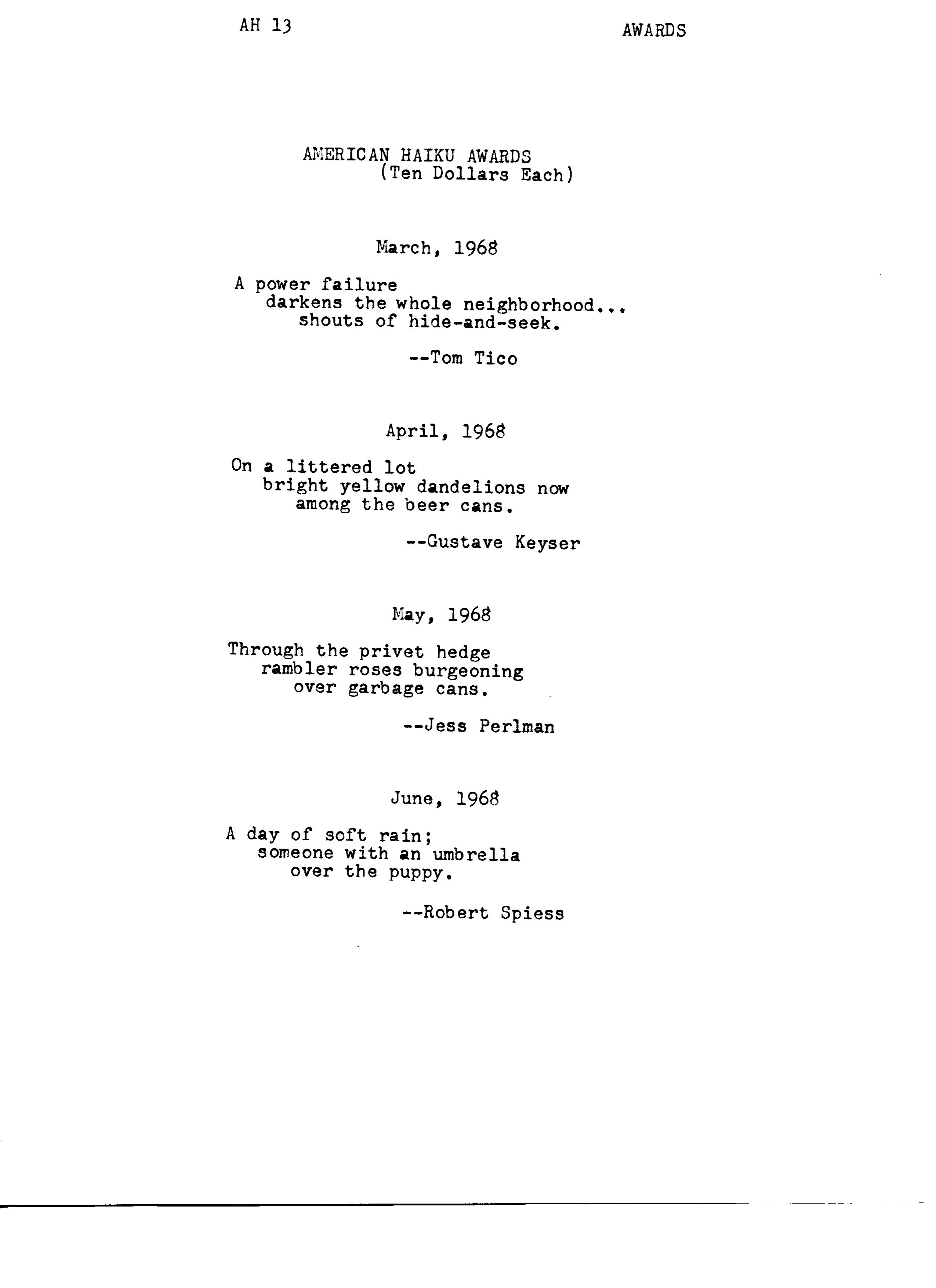 American Haiku - Vol. 7, No. 1 (unpublished)